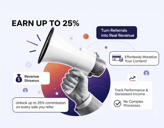 Get up to 25% commission on every successful referral. A simple and transparent affiliate program designed for real growth.