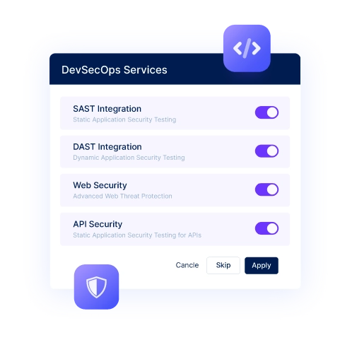 DevSecOps services are designed to integrate security throughout the development process. We focus on three key areas: SAST integration, DAST integration, and Web security, ensuring your applications are secure from code to deployment.